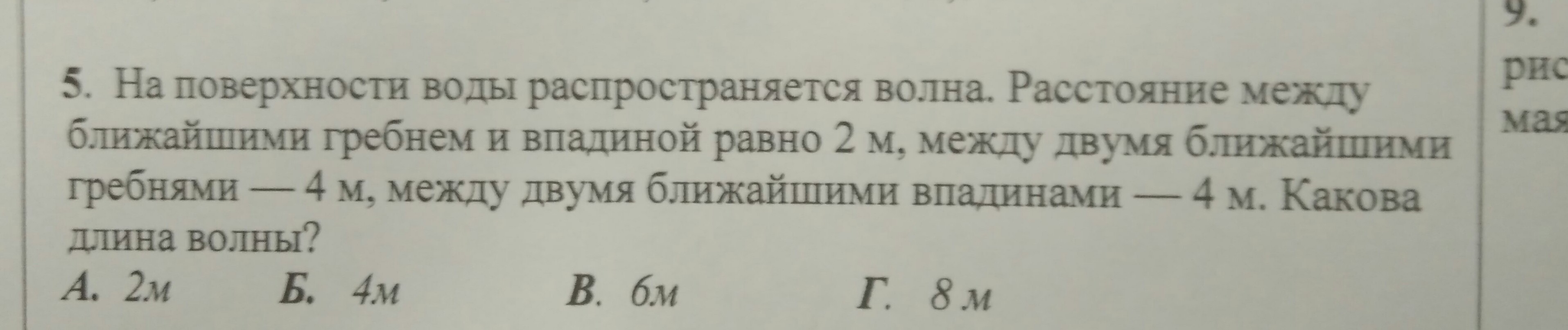 Если расстояние между ближайшими впадинами 4м, значит и длина волны 4м. Ответ Б.