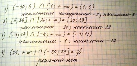 Найдите наибольшее (наименьшее) натуральное число принадлежащее пересечению числовых промежутков: