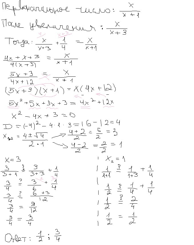 Либо первоначальная дробь равна 3/4, либо 1/2