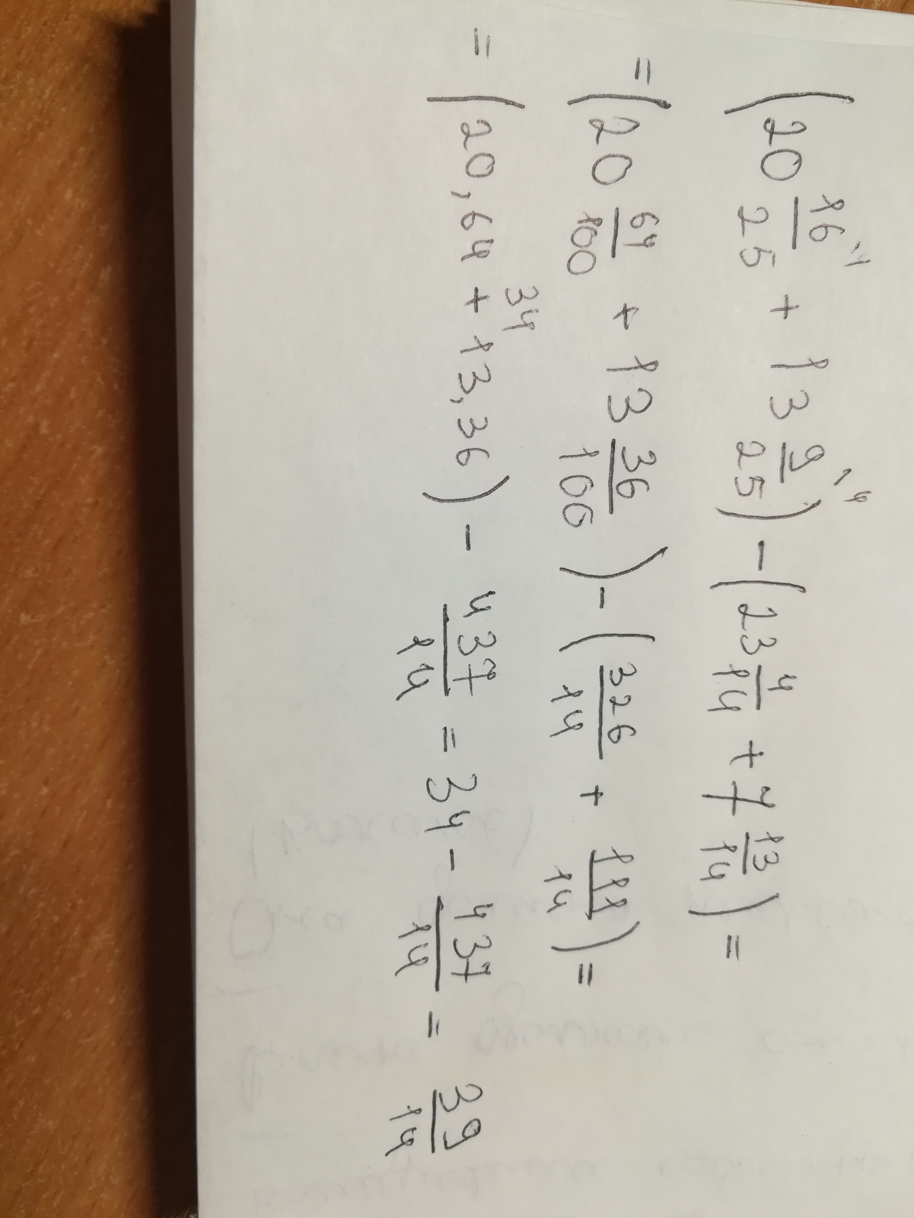 Складываем первую скобку, получается 34.