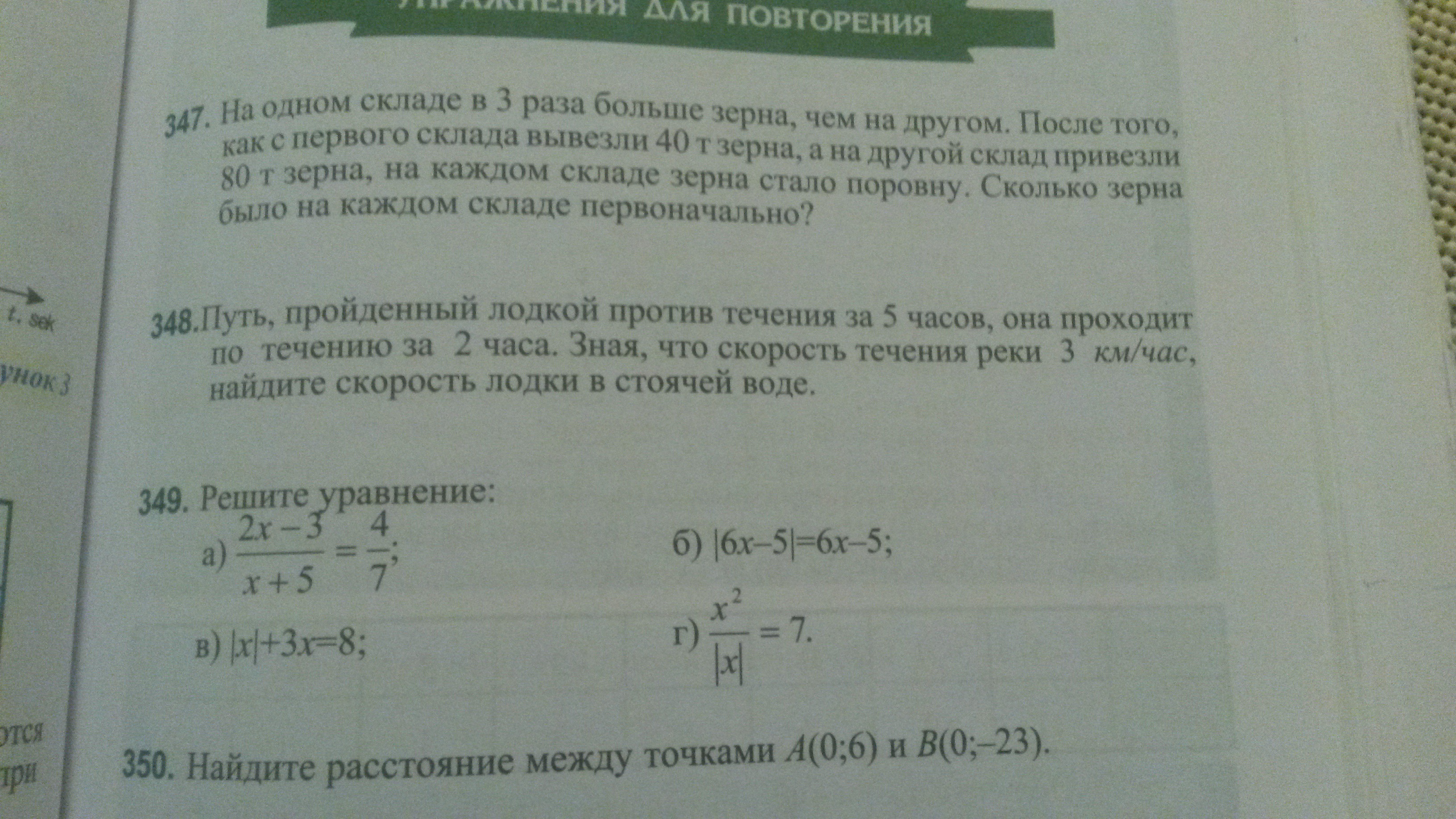Пусть х скорость лодки в стоячей воде, тогда (х-3)*5 это расстояние и (х+3)*2 тоже расстояние