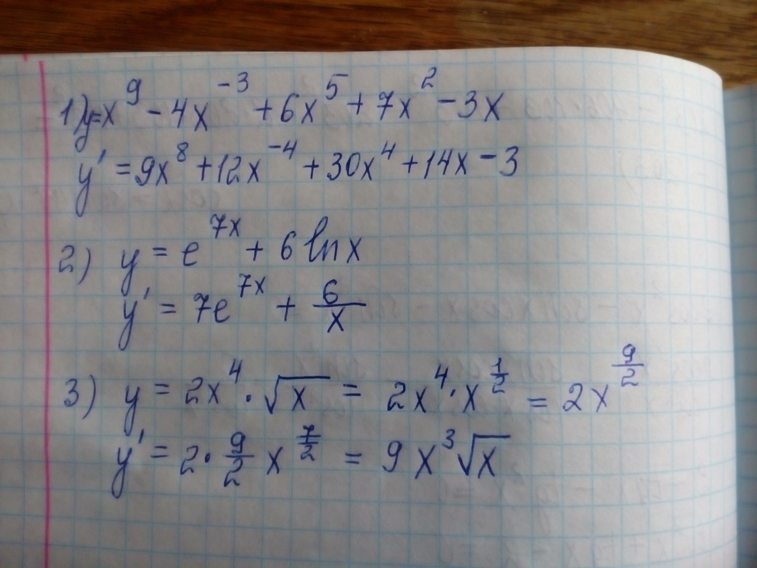 1) х в степени 9 - 4х в степени -3+ 6х в степени 5 + 7х в степени 2 - 3х =