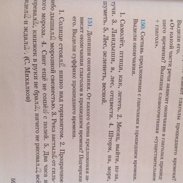 птица сидела на крыше моего дома и грелась там. (окончание -а-, -ась-)
