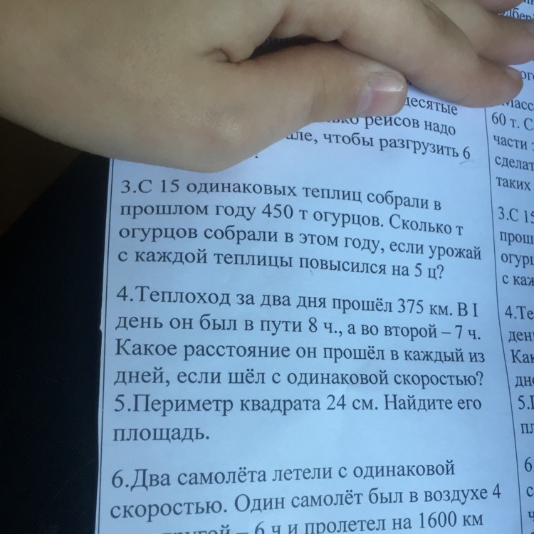 4. Всего теплоход был в пути 7+8=15 часов, в один час он проходит 375:15=25 км, значит в первый день он прошел 8*25=200км, во второй день 7*25=175