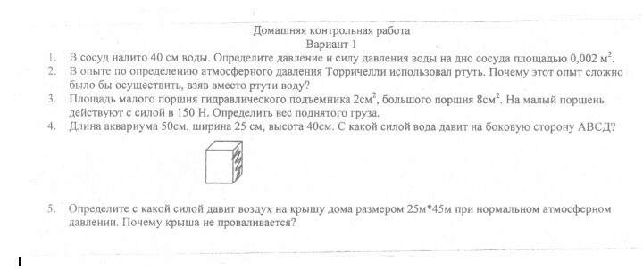 4) F=1000*9,8*0,25*0,5*0,4=490 Н