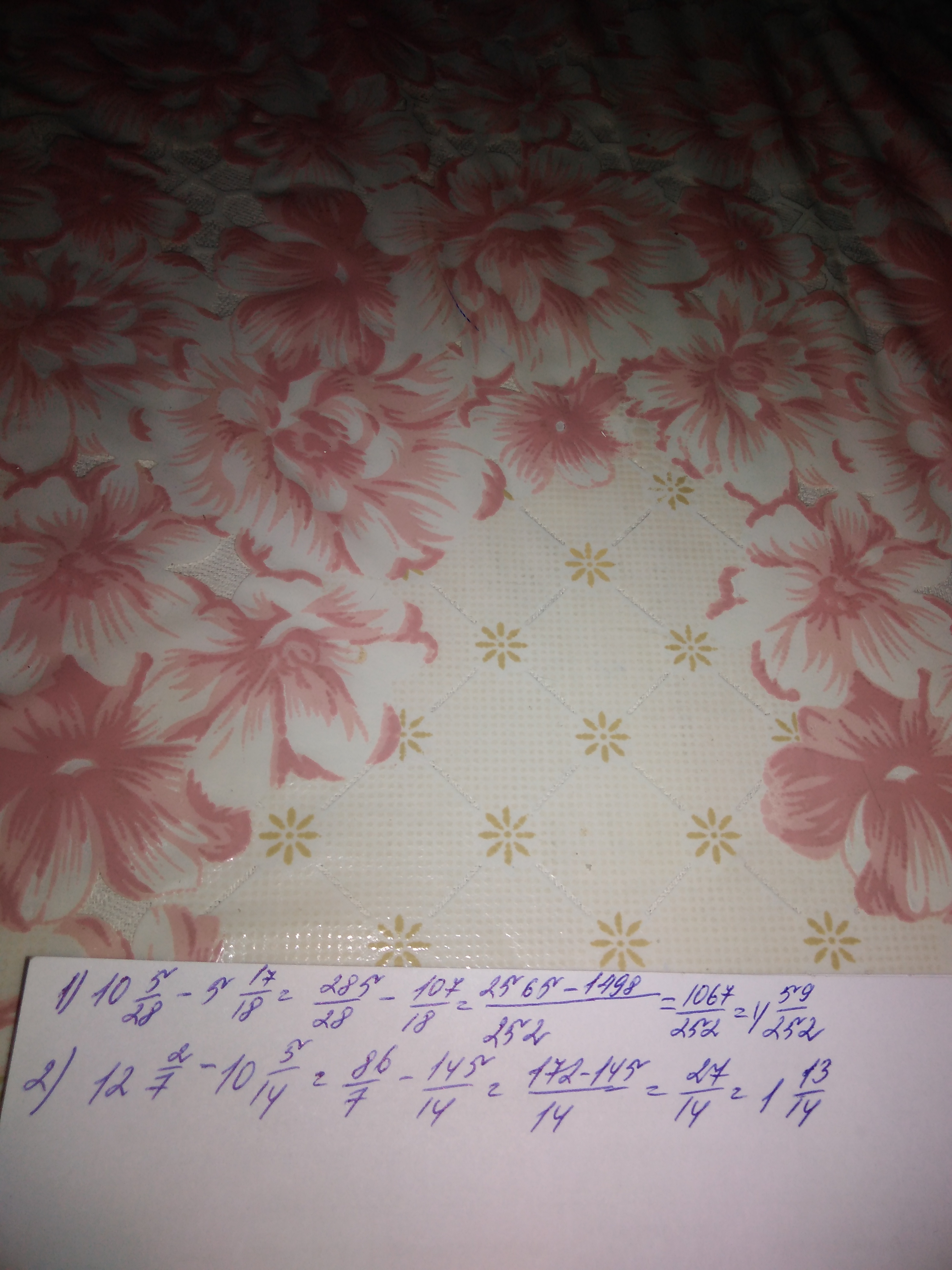 10 целых 5/28 - 5 целых 17/18, 12 целых 2/7 - 10 целых 5/14