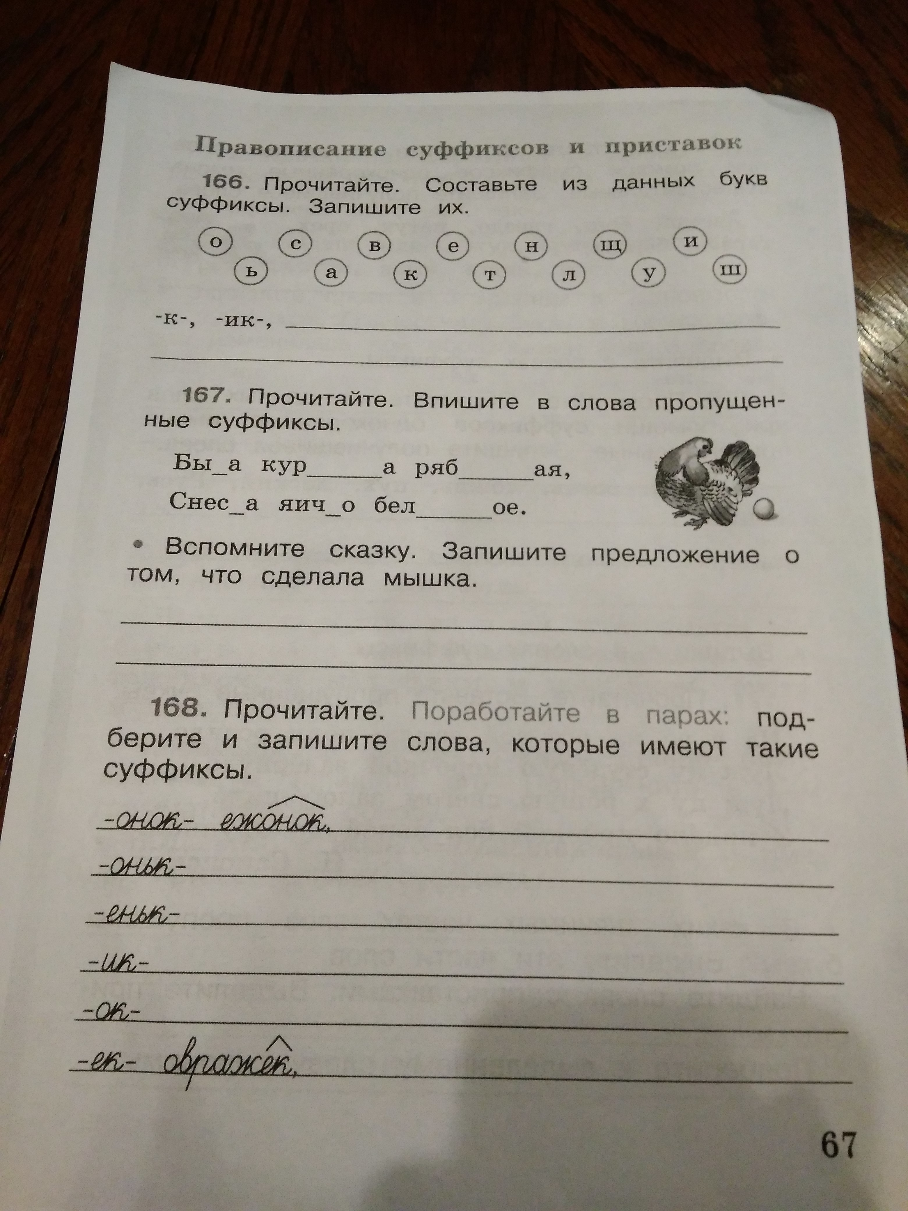 166. -щик-, -ущ-, -н-, -тель-, -ник-, -ость-, -а-, -ов-, -лив-, -ищ-, -ек-, -ок-, -ушк-, -еньк-.