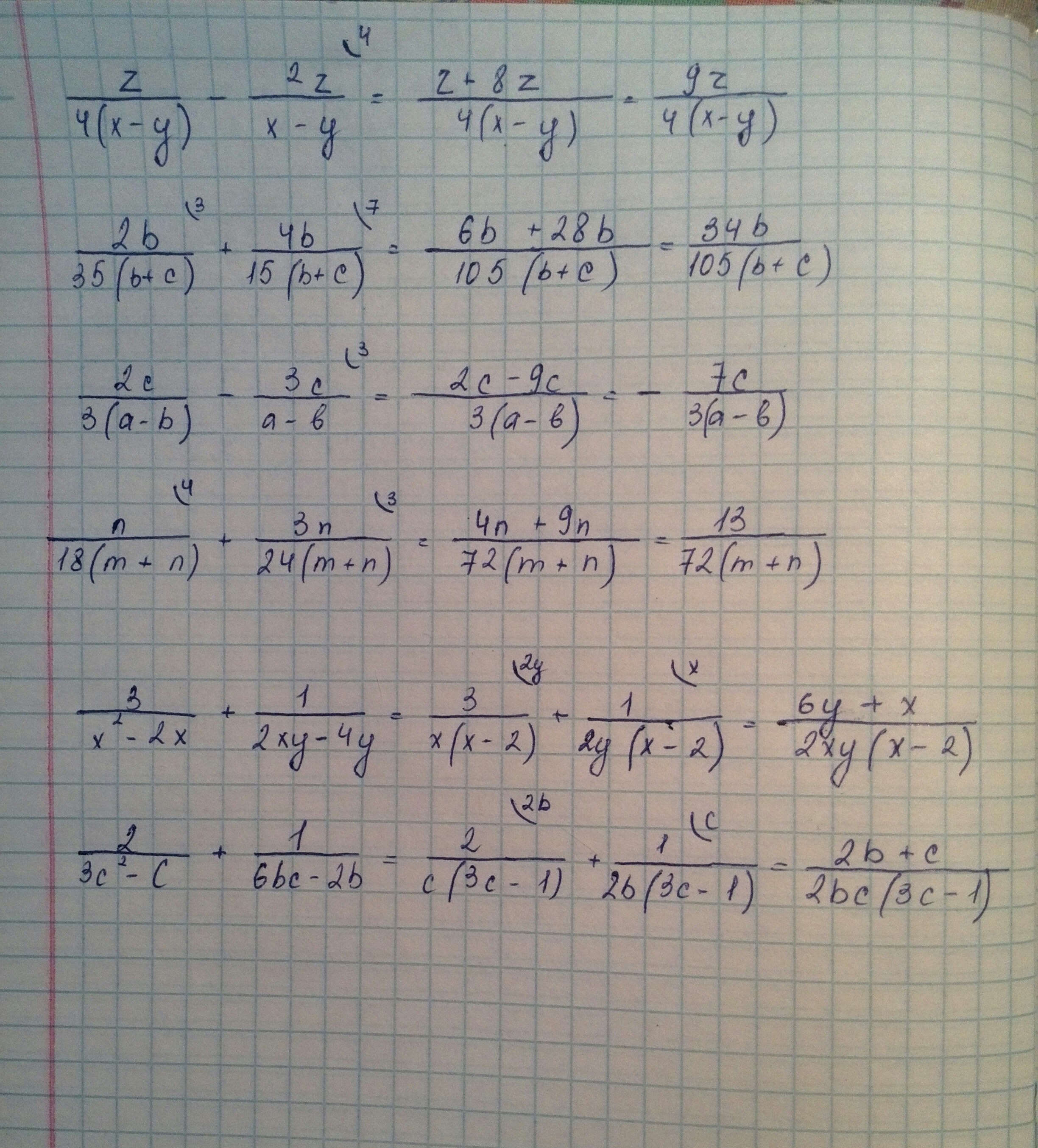 там где я сверху надписывала это значит я домножала и числитель и знаменатель на число, которое надписывалв сверху