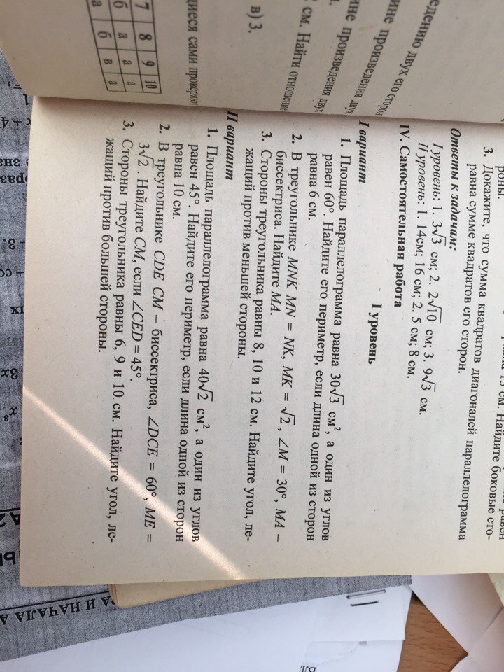 1. Дан параллелограмм ABCD с высотой BK и <BAK=60°, BC = 6. Площадь параллелограмма =BC*BK. 30√3 = 6*BK
