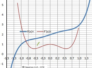Производная положительная - функция убывает и наоборот.