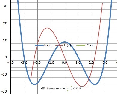 x₁ = 0, x₂.₃ = +/- √(5 ≈ +/- 2.24 - ОТВЕТ - рис. 1..