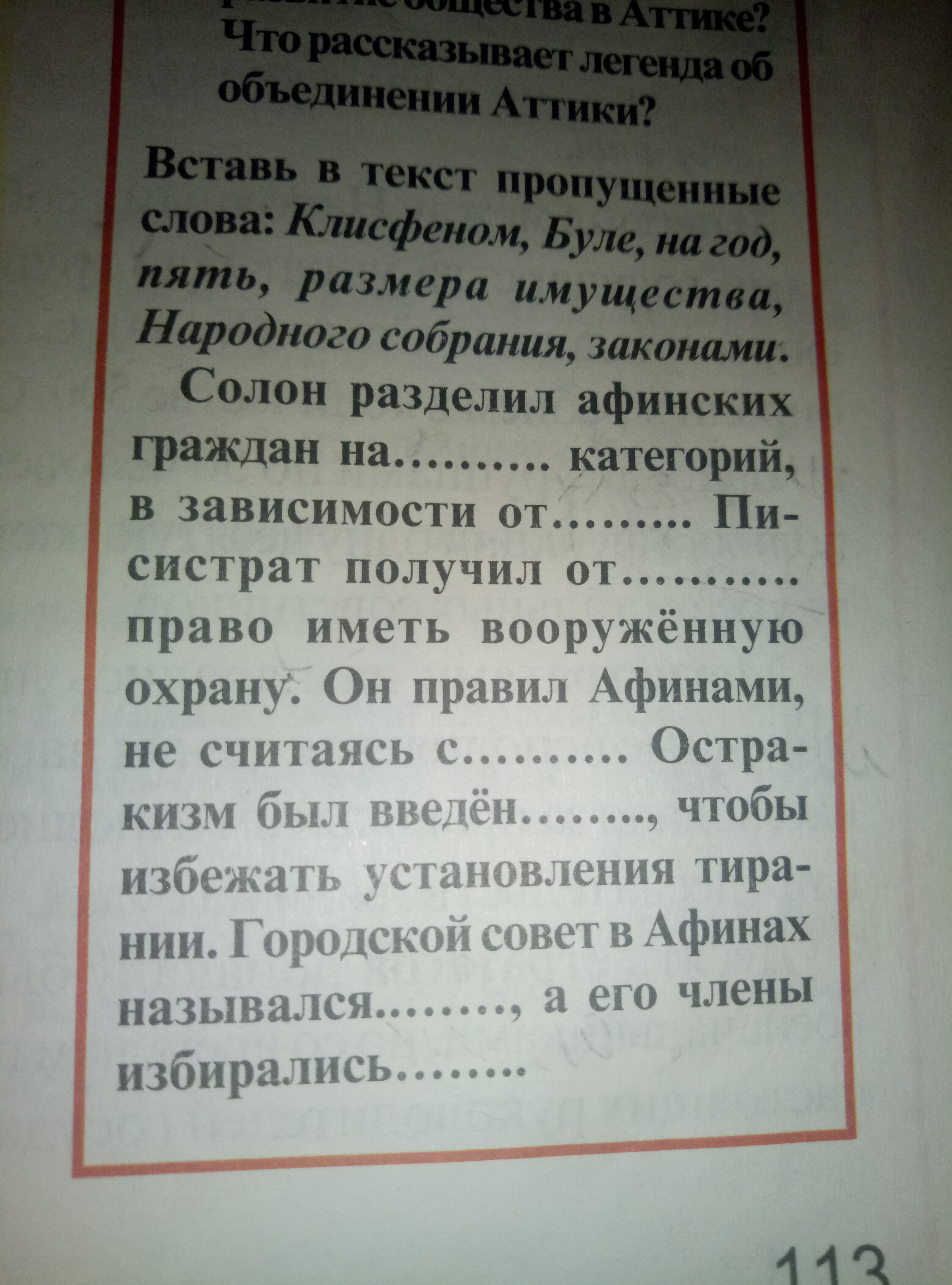 2)Размера имущества 3) Народного собрания 4) Клисфеном 5) Законами 6)Буле 7) На год