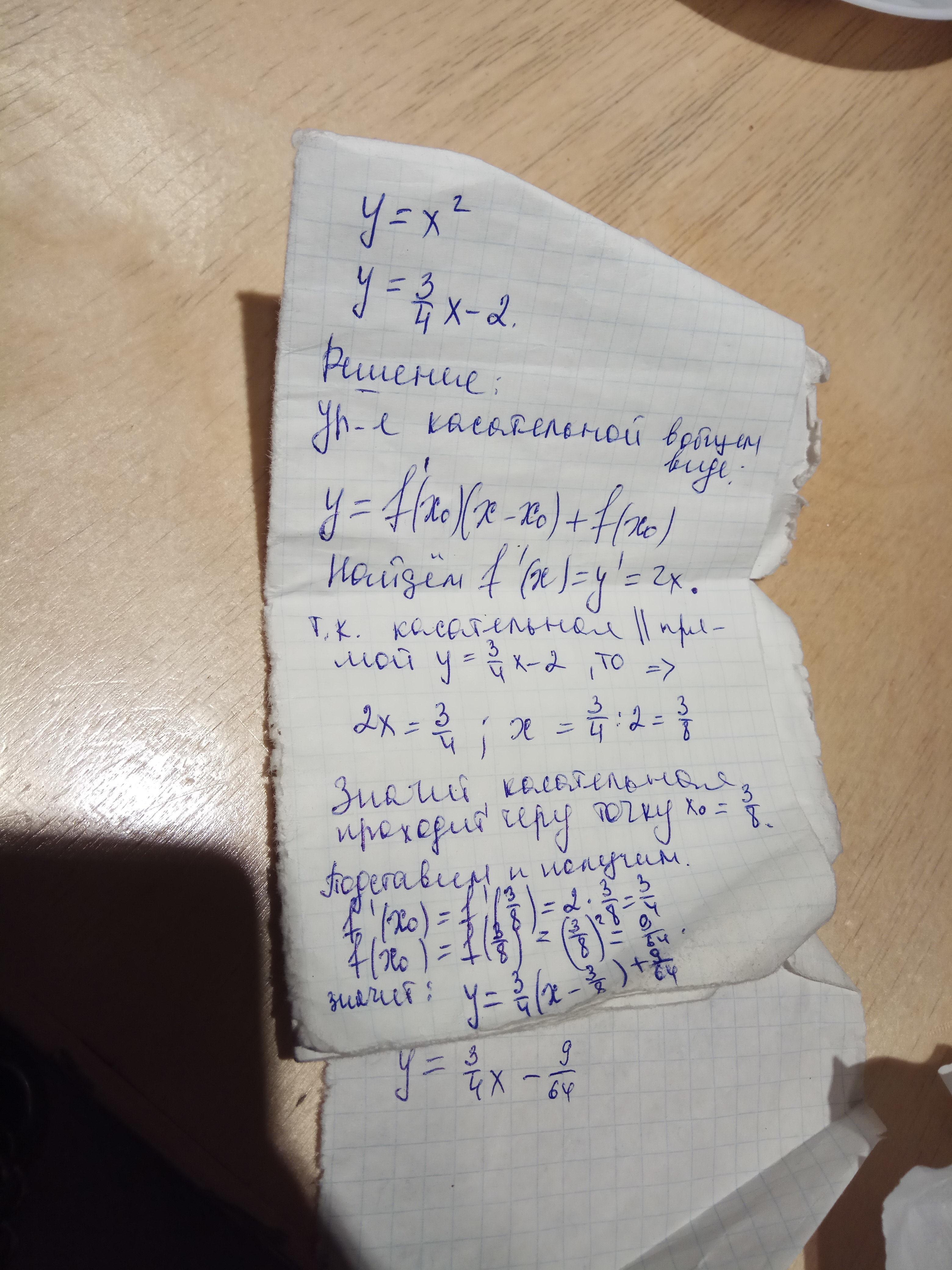 Пожалуйста,составьте уравнение касательной к графику функции y=x², которая параллельна данной прямой: y=3/4X-2