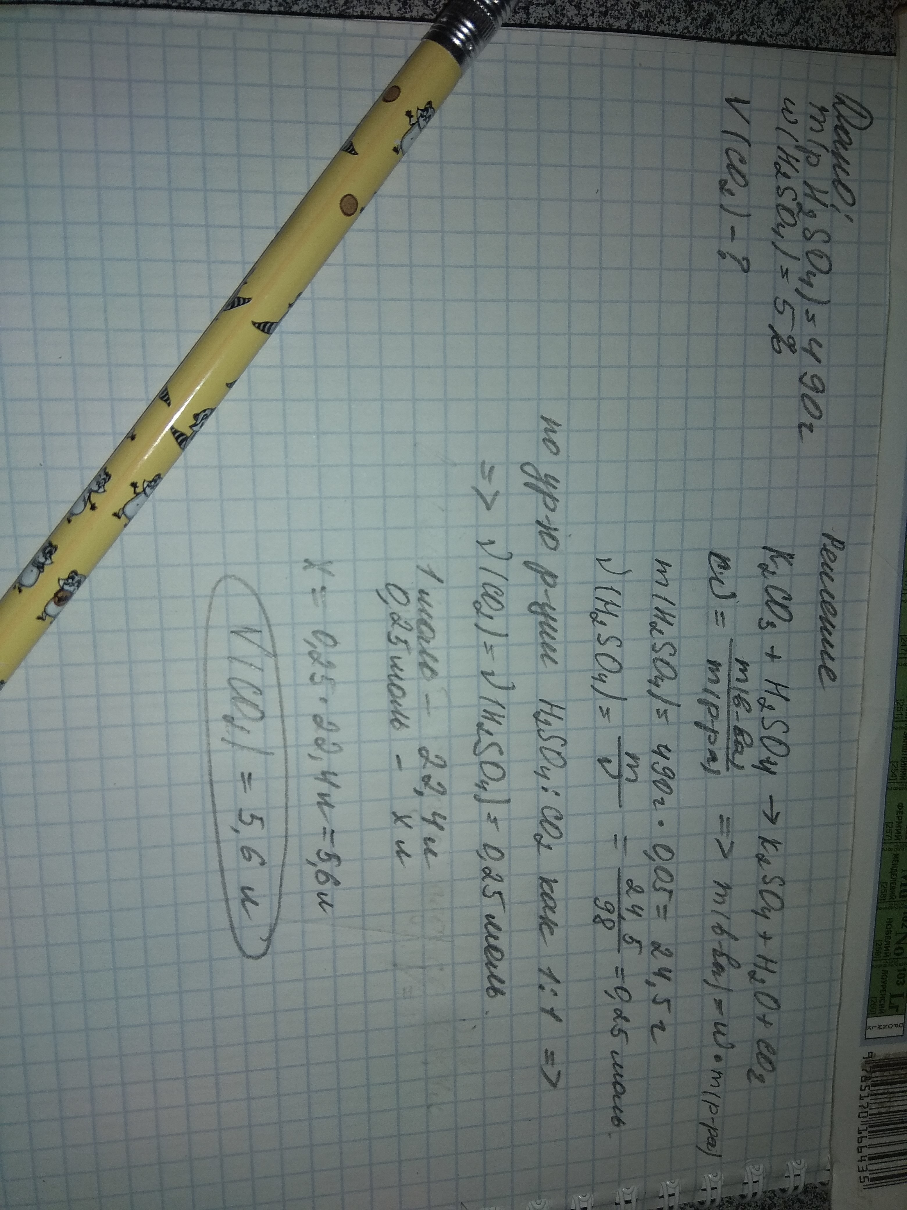 СРОЧНО ХЕЛП ПОМОГИТЕ!!!!!!!!!!!!!!!!!!!!!!!!!!!! какой объём газа выделится при взаимодействии карбоната калия с 490г 5% раствора серной кислоты?