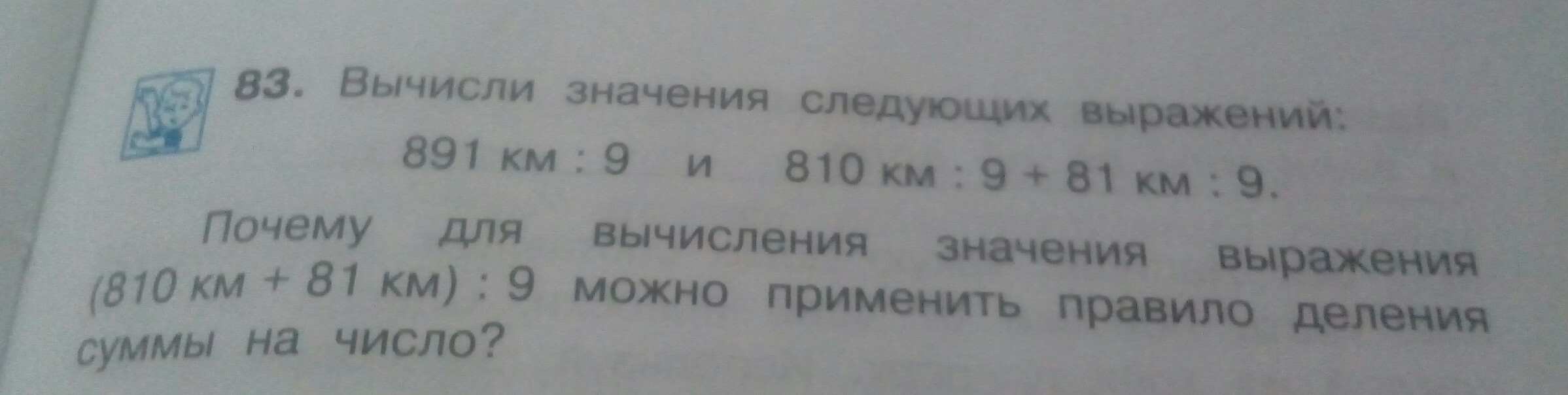 После этого уже не составляет особого труда объяснить, что для вычисления значения выражения (810 км + 81 км) : 9 можно применить правило деления суммы на число.