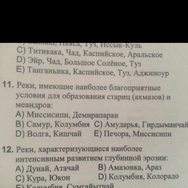 Правильный ответ Е. Здесь только равнинные реки на кот. и образ. старицы и меандры. В остальных ответах есть горные реки, которым это не свойственно из-за быстрого течения.