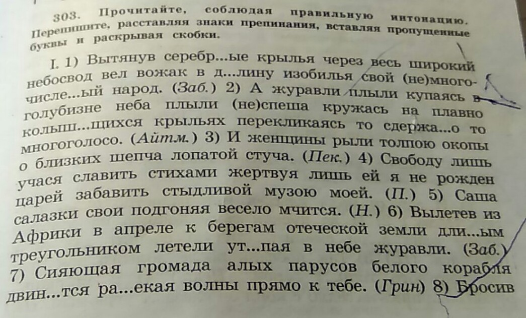 Прочитайте, соблюдая правильную интонацию. Перепешите, расставляя знаки препинания, вставляя пропущенные буквы и раскрывая скобки.