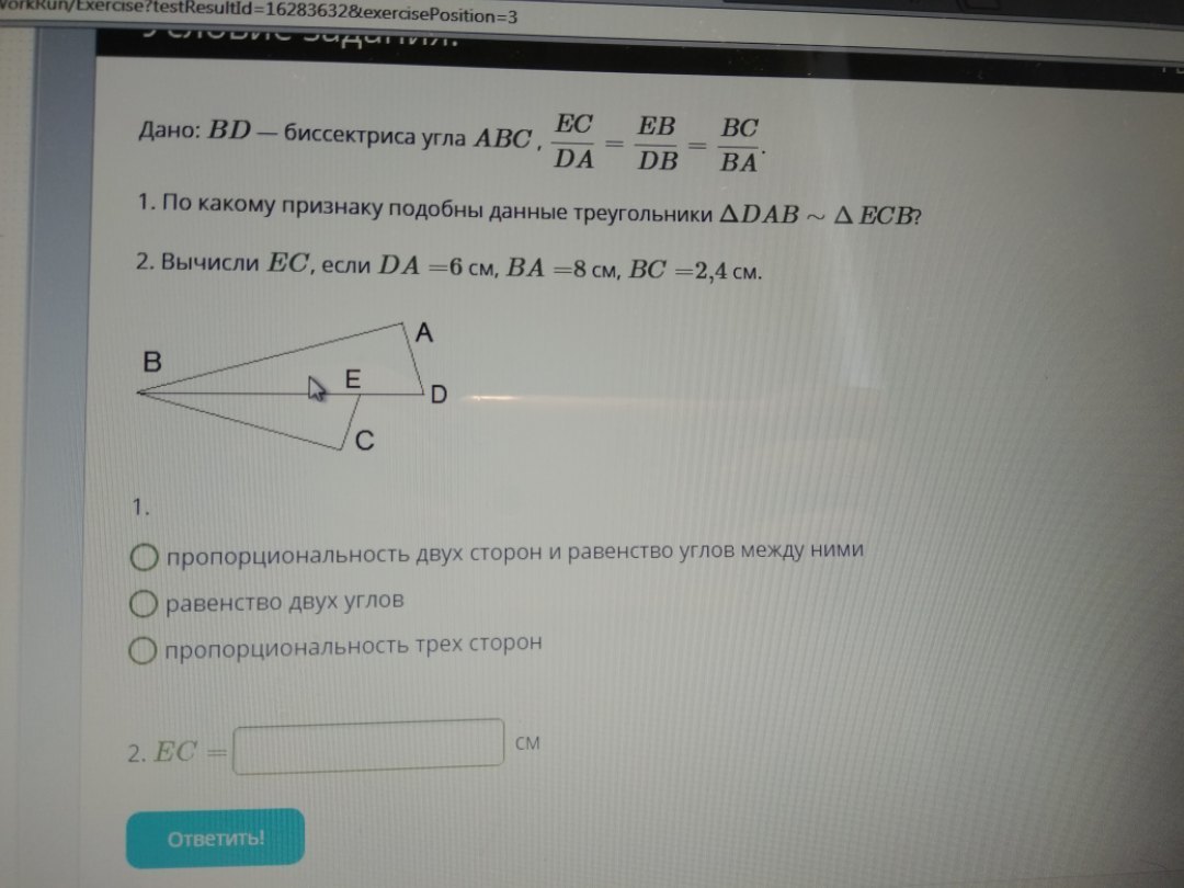 2) ЕС/DA=BC/BA