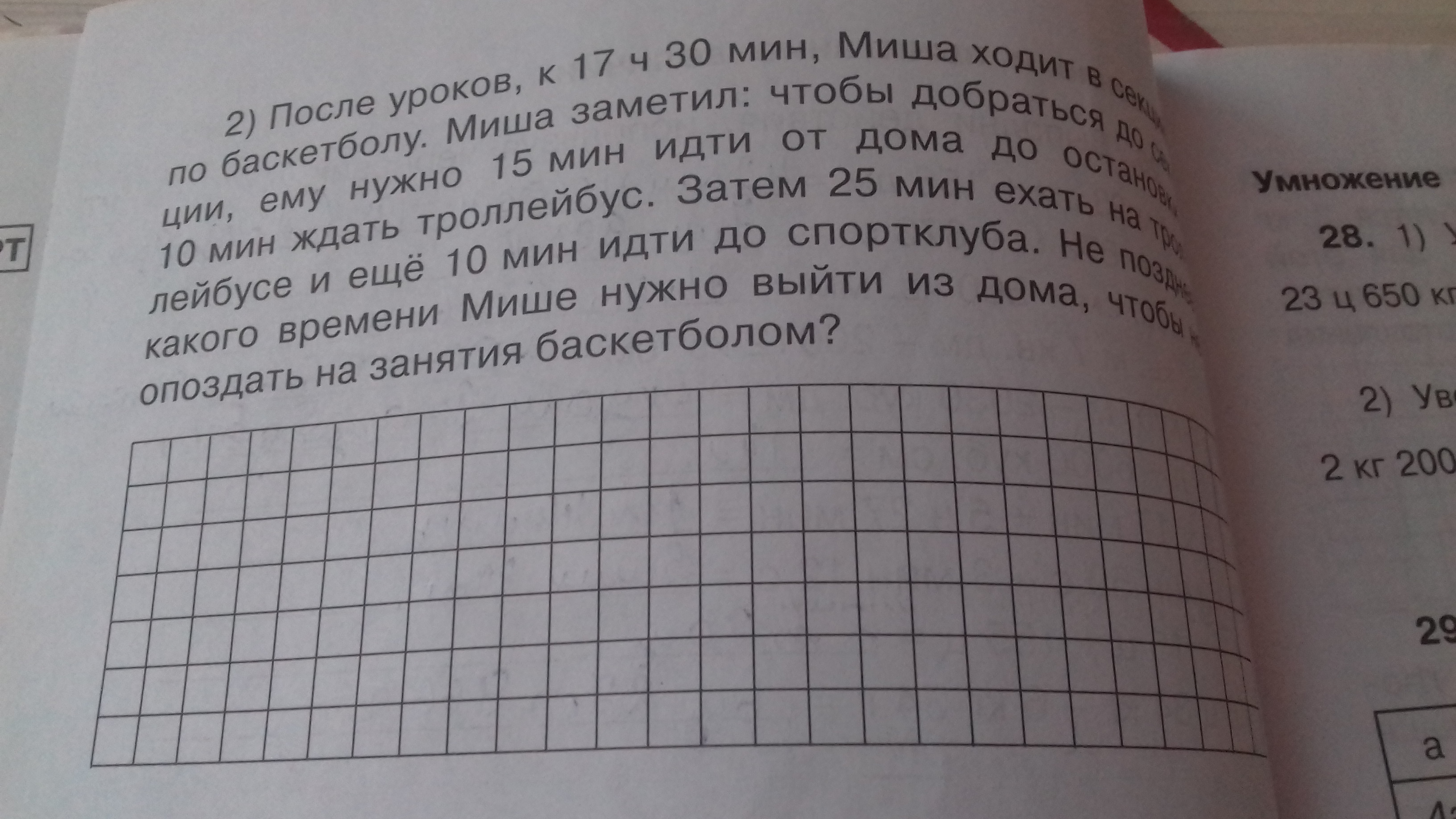 Ответ: Мише,чтобы успеть на тренировку надо выходить из дома в 16 часов 30 минут...