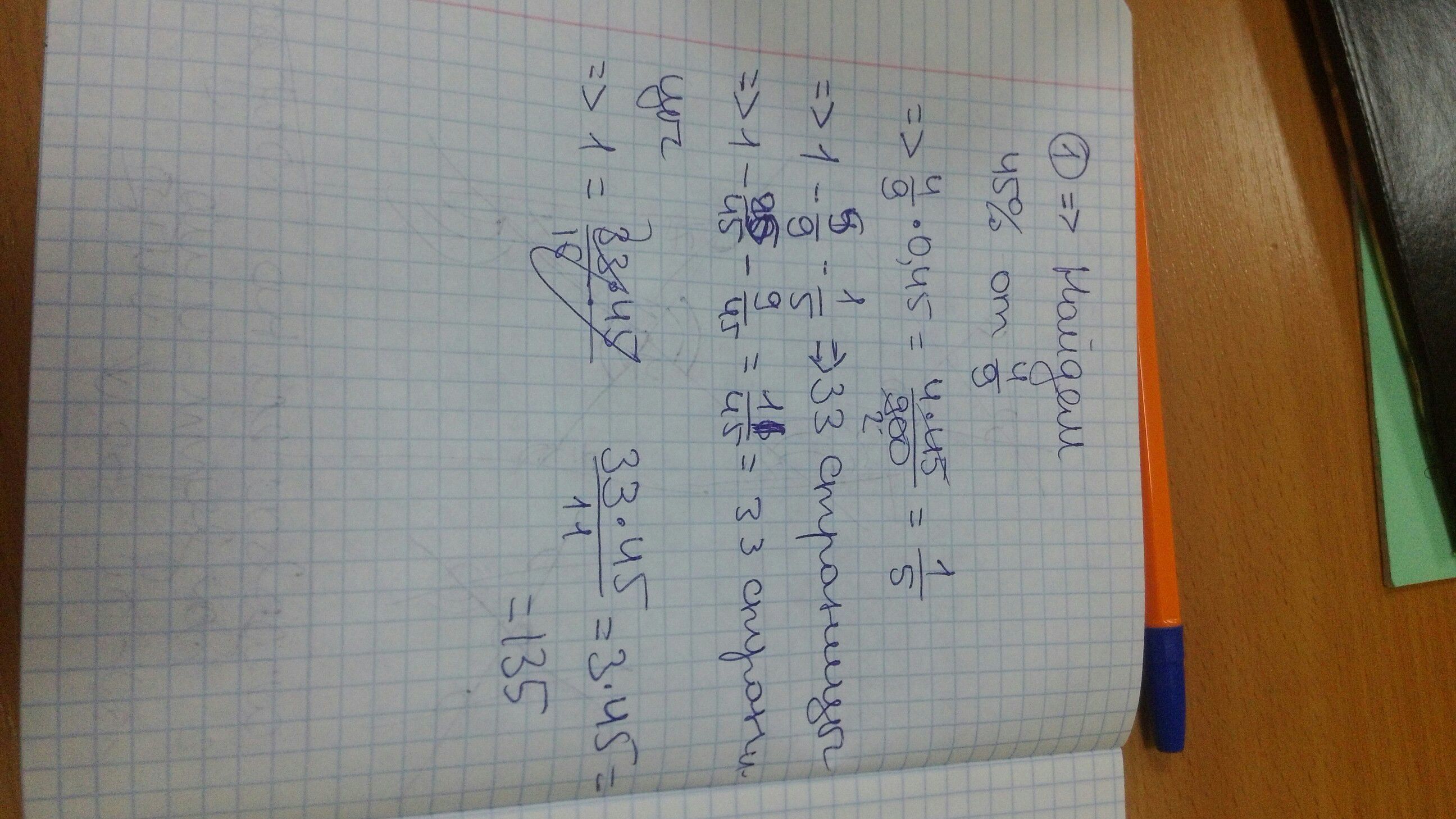 Машинистка в первый день напечатала 5/9 рукописи,во второй день 45% остатка,а в третий-остальные 33 страницы.Сколько страниц в рукописи?