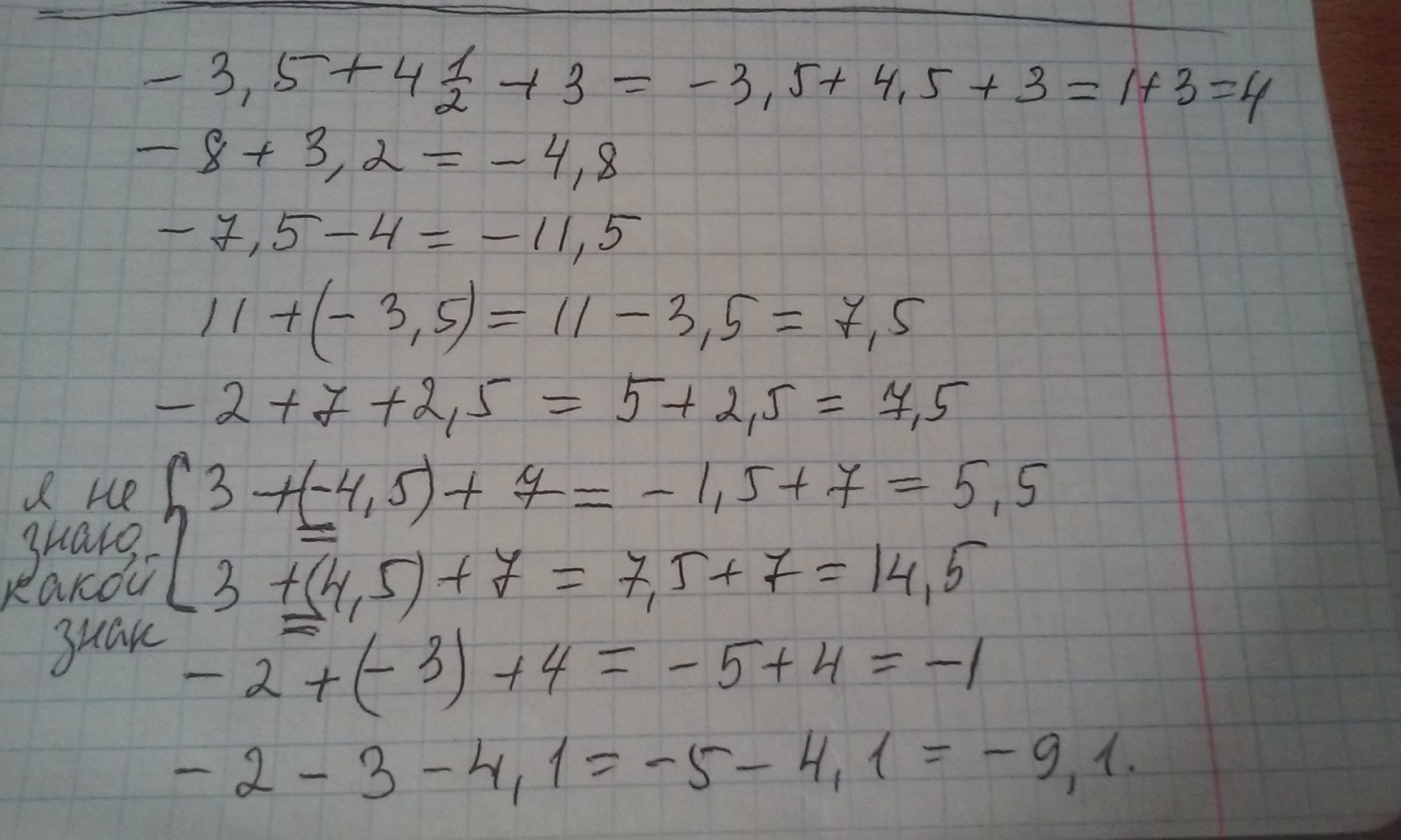-3,5 + 4 1/2 + 3 = -3,5 + 4,5 + 3 = 4