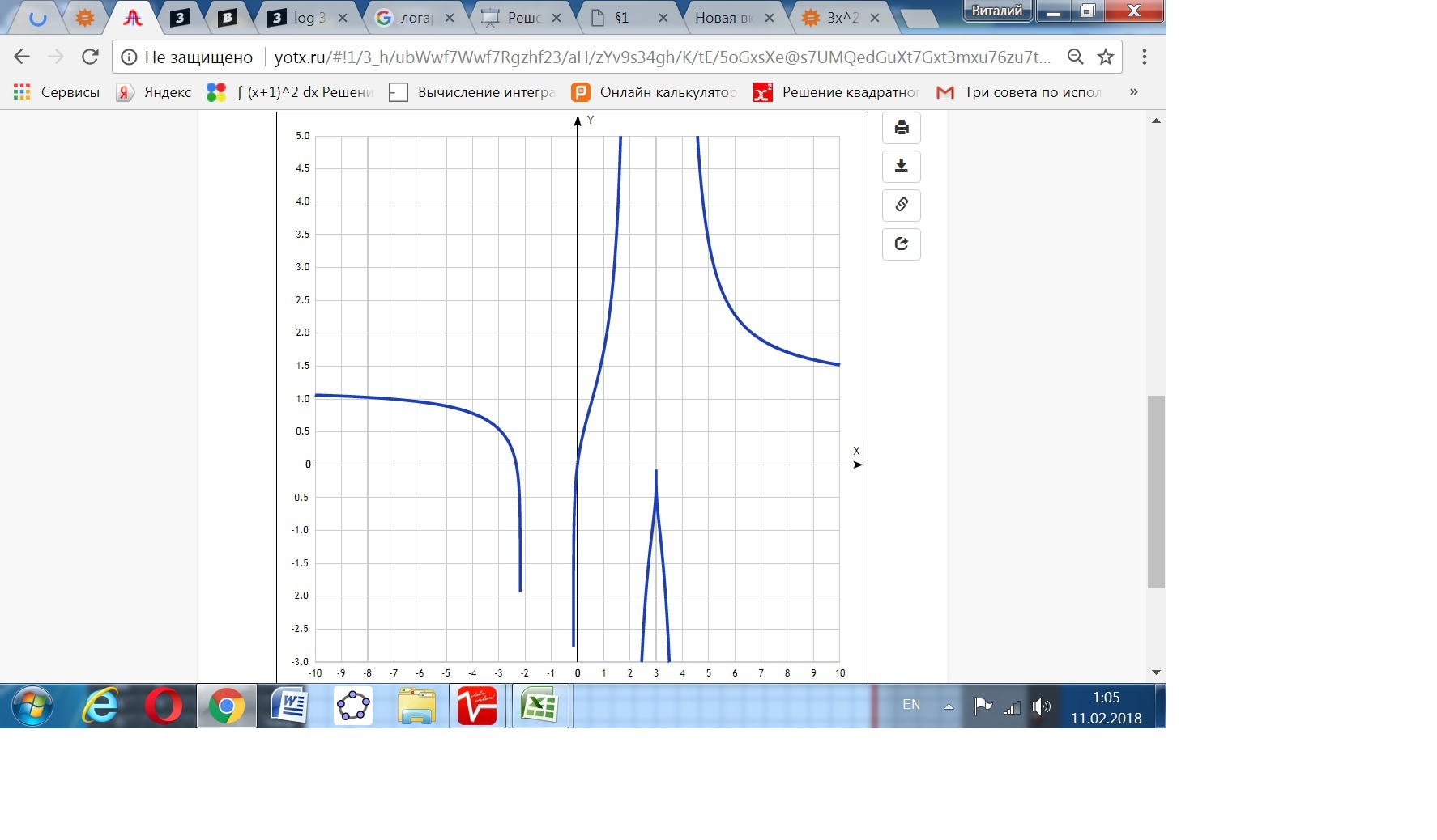 На прилагаемом графике функции эти промежутки хорошо видны.