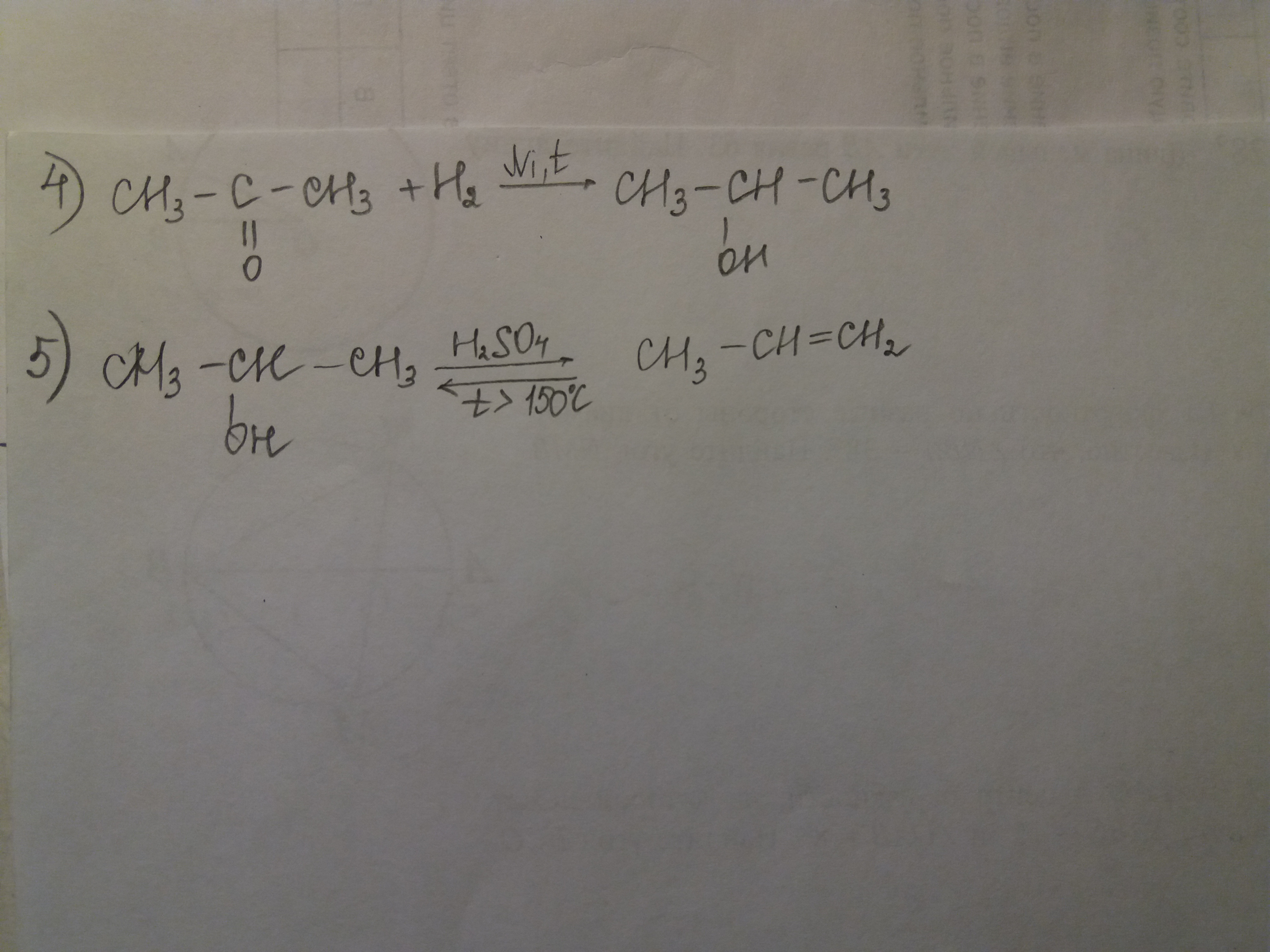 Пропан→2-хлорпропан → пропанол-2 → пропанон → пропанол-2 → пропен.