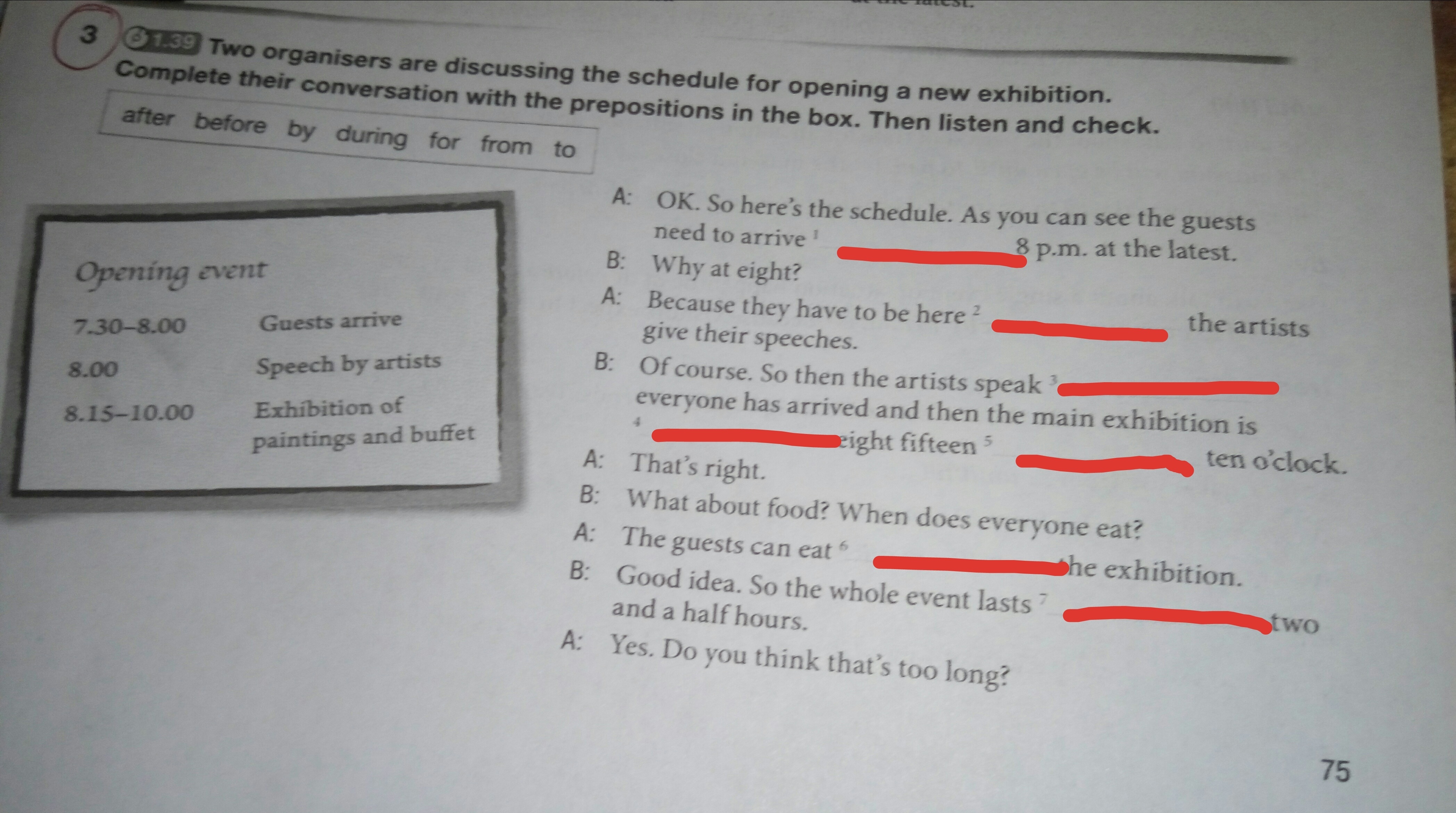 1 by 2 before 3 after 4 from 5 to 6 during 7 for