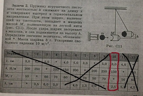 Энергия сжатой пружины Епр=кх²/2 переходит к кинетическую энергию шарика и затем в потенциальную энергию шарика и мишени при максимальном их подъеме Ер=(m+M)gh.