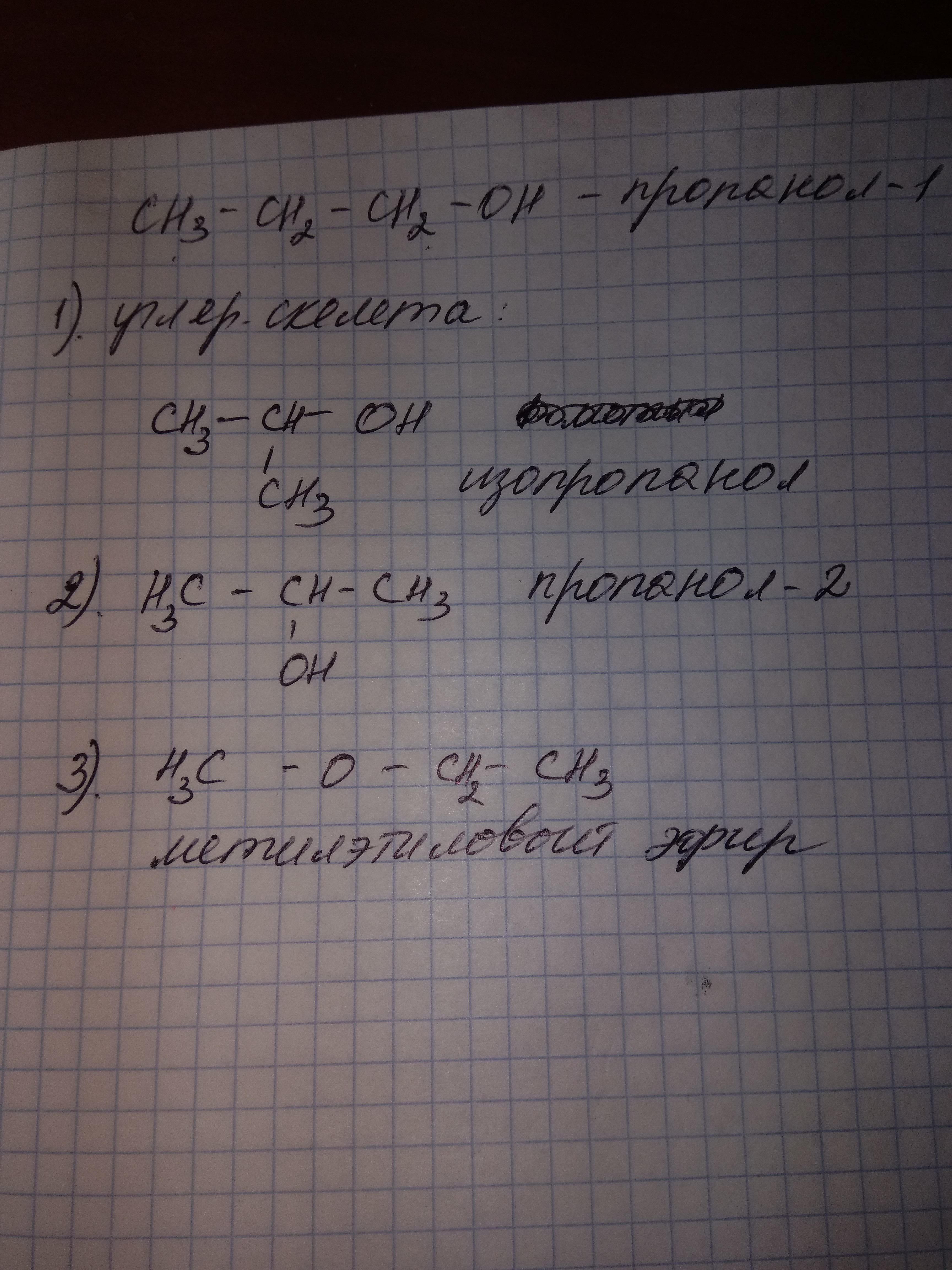 Приведите пример изомеров пропанола-1