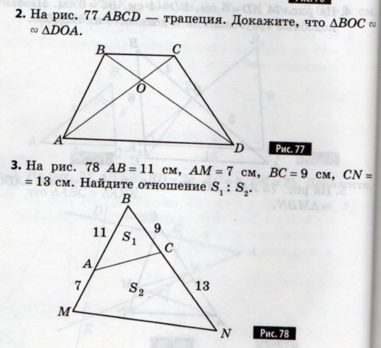 ΔBOC подобен ΔDOA (по признаку подобия: если два угла одного треугольника равны двум углам второго треугольника, то треугольники подобны).