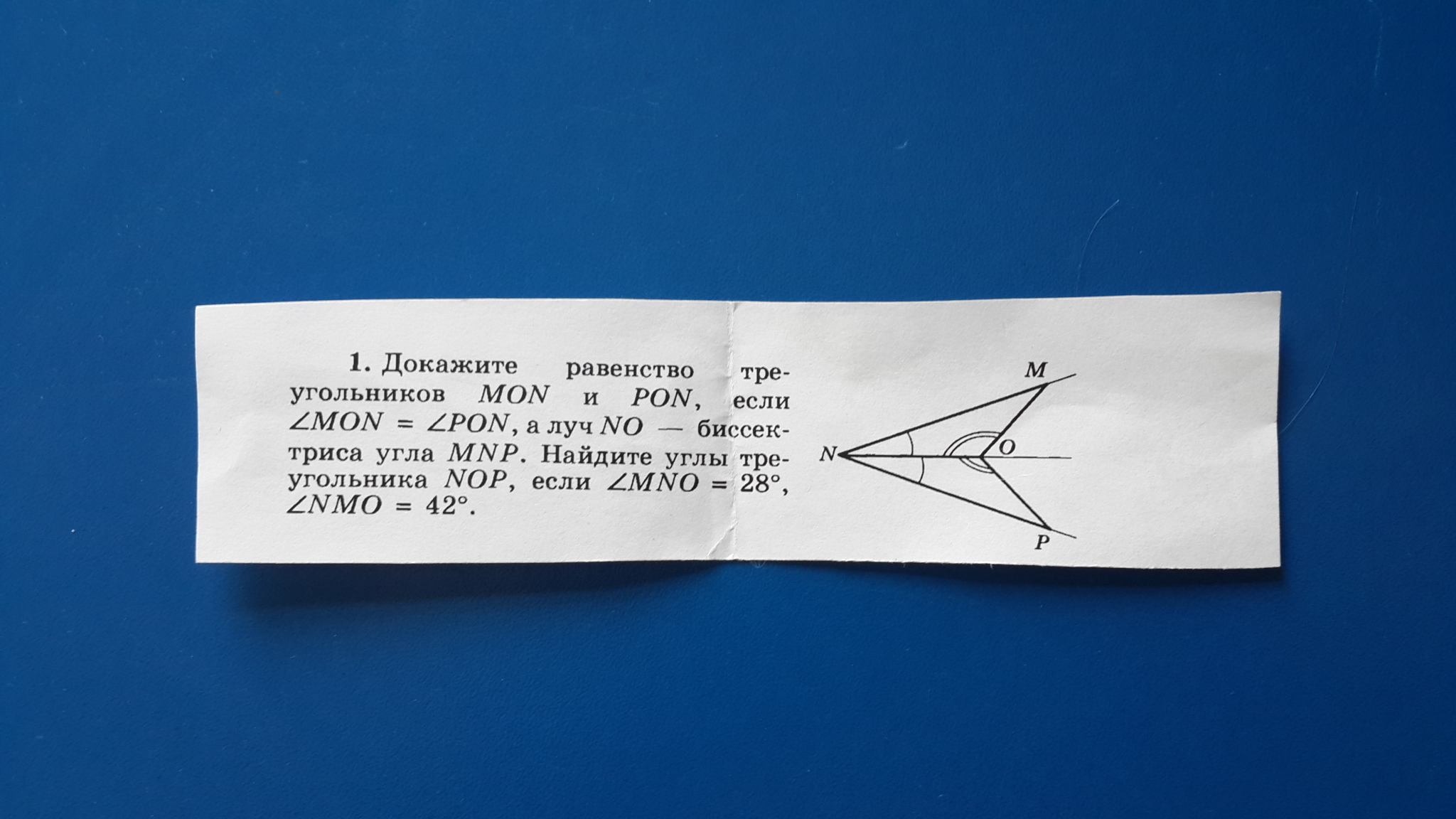 Так как у нас треугольники равны, то и углы NMO=NPO равны