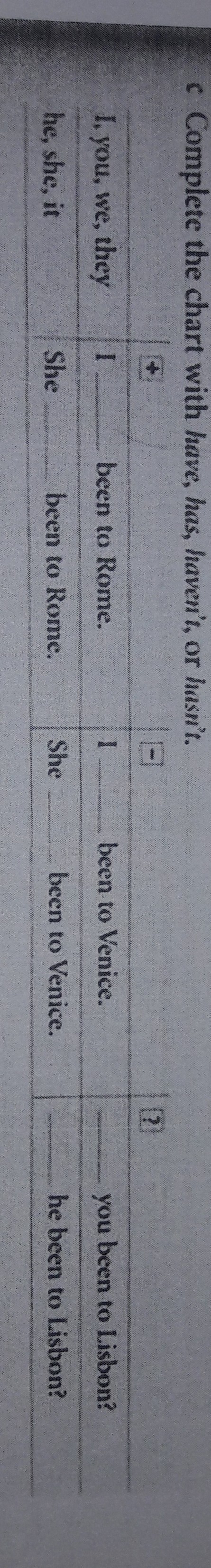 I have been to Rome. I haven't been to Venice. Do you been to Lisbon?