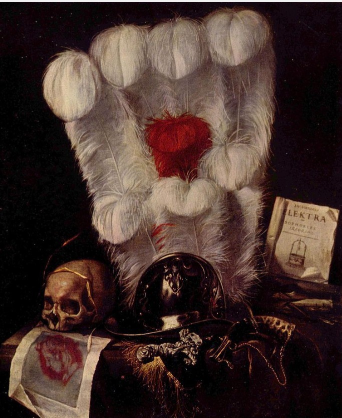 Картина Бриана Ван Стрелка «Суета сует», написанная в 1670 году, поражает нас необычным сочитанеем предметов. Насколько точно передает художник, чувства которые он испытывает в картине: ярость, тревога, переживание. В стороне не остаётся и цветовая гамма. Томные и темные цвета украшает белое пятно, что даёт нам понять, в плохом мире всегда есть что-то хорошее.