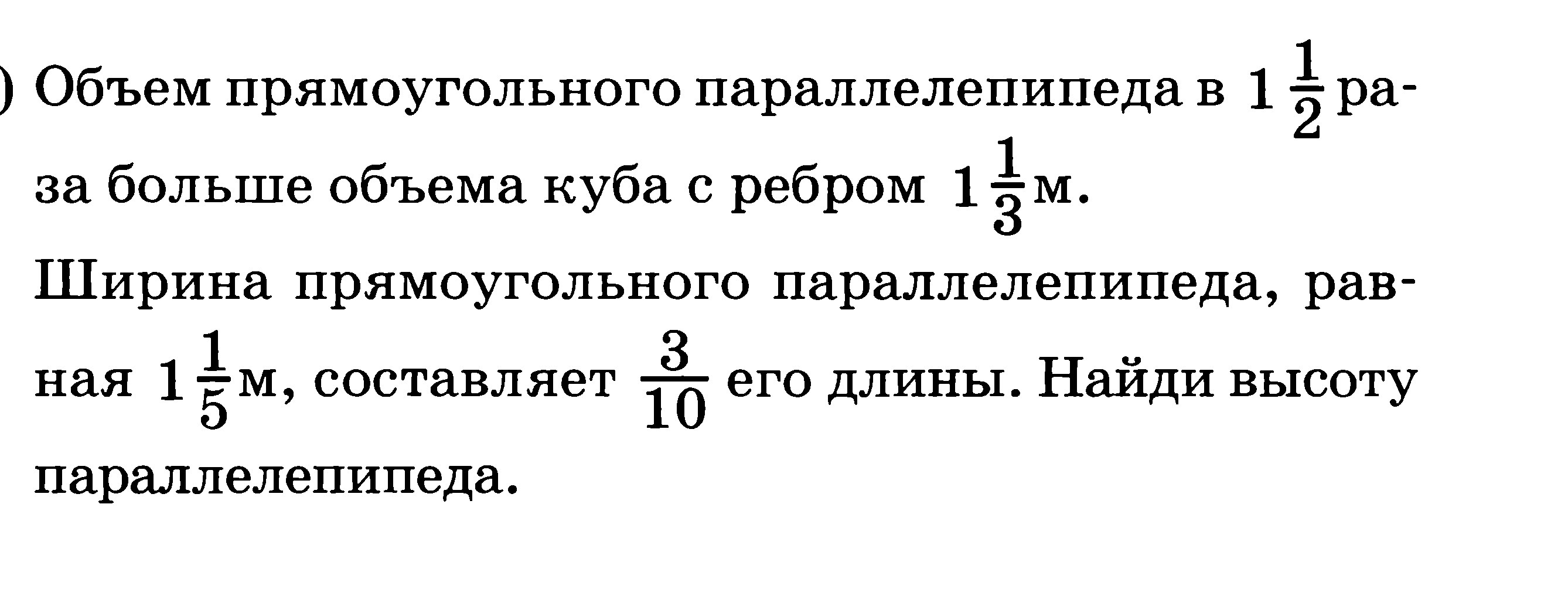 3) 1 1/5:3/10=4 м - длина параллелепипеда