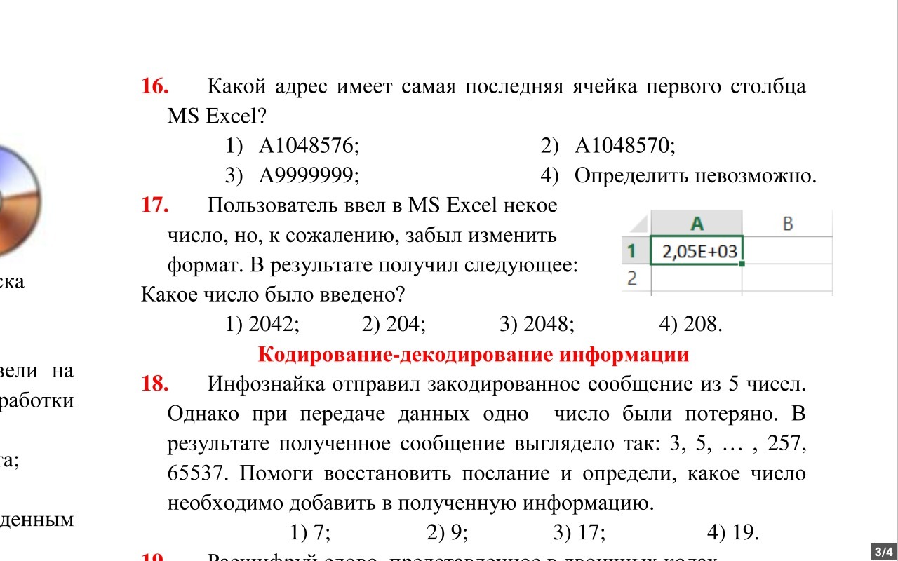 Ответ: Самая последняя ячейка первого столбца в Microsoft Excel (2010) имеет адрес 1) А1048576