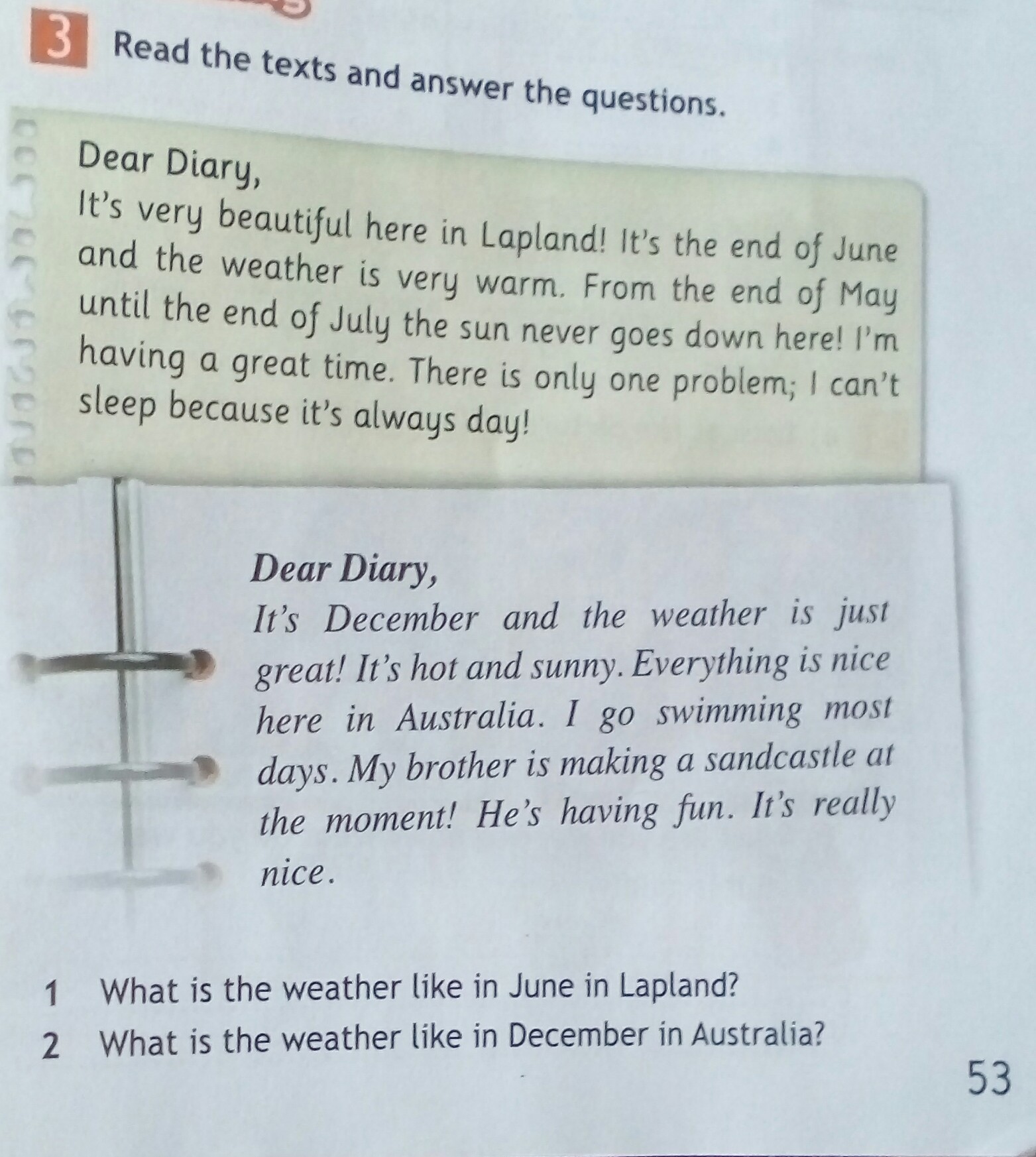 2) The weather is hot and sunny in December in Australia