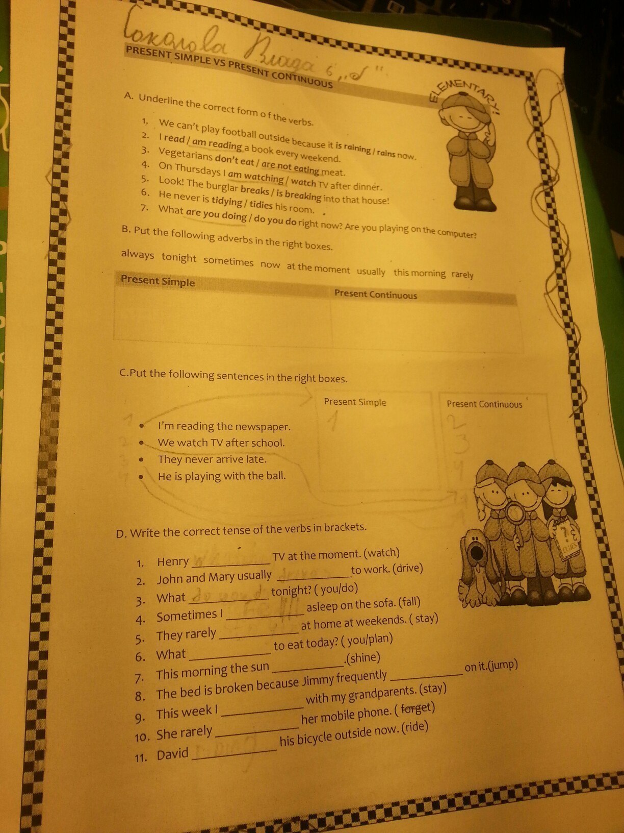 Present Con: I'm reading the newspaper, He is playing with the ball