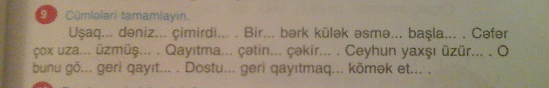 Usaqlar dənızdə çimirdilər. Birdən bərk külək əsməyə başladı. Cəfər çox uzaqa üzmüşdü. Qayıtmaqnan çətınlik çəkirdi. Ceyxun yacşı üzürdü. O bunu görüb geri qayıtdı. Dostunun geri qayıtmağına kömək etdi.