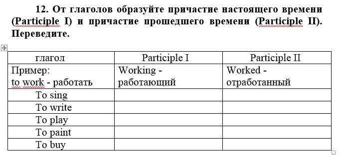 to sing петь, to write писать, to play играть, to paint рисовать, to buy покупать.