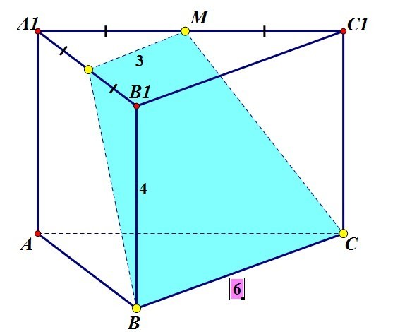 Помогите, пожалуйста. Дано: АBCA1B1С1 - правильная призма, ВС=6, АА1=4, точка М - середина А1С1. Найти: Р сечения призмы плоскостью ВМС.