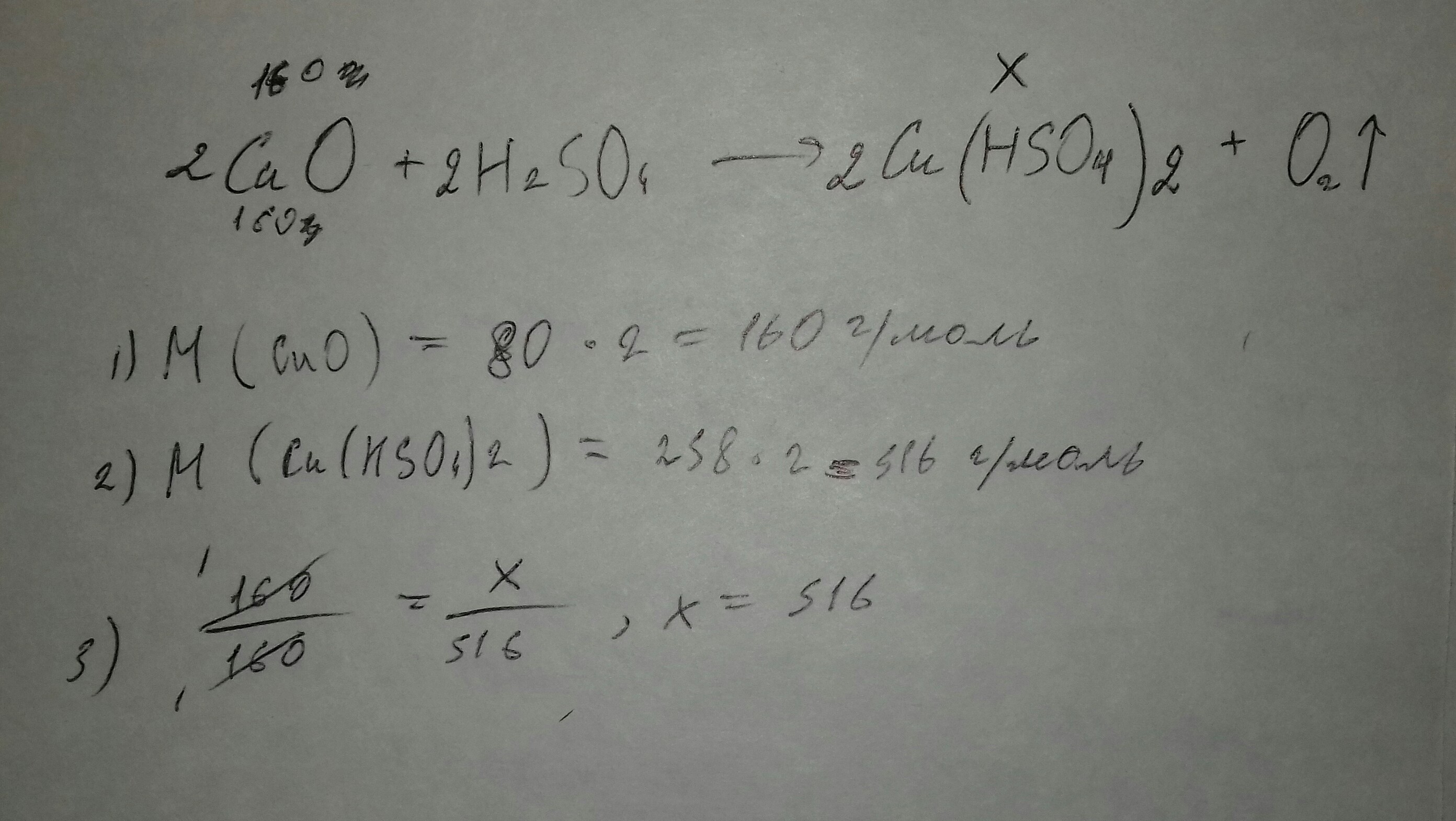Количество вещества соли, образовавшейся при взаимодействии 160 г оксида меди (II) c избытком серной кислоты, равна…г. (Ответ дайте с точностью до целых без указания единиц измерения)