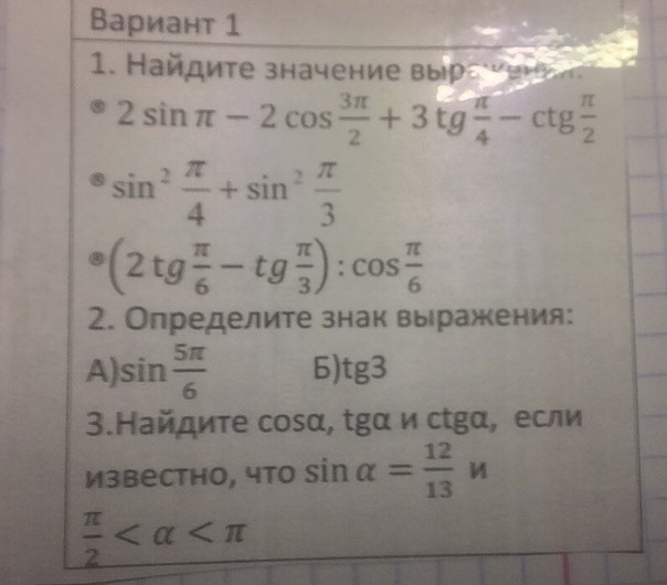 A) sin 5π/6 Б) tg3