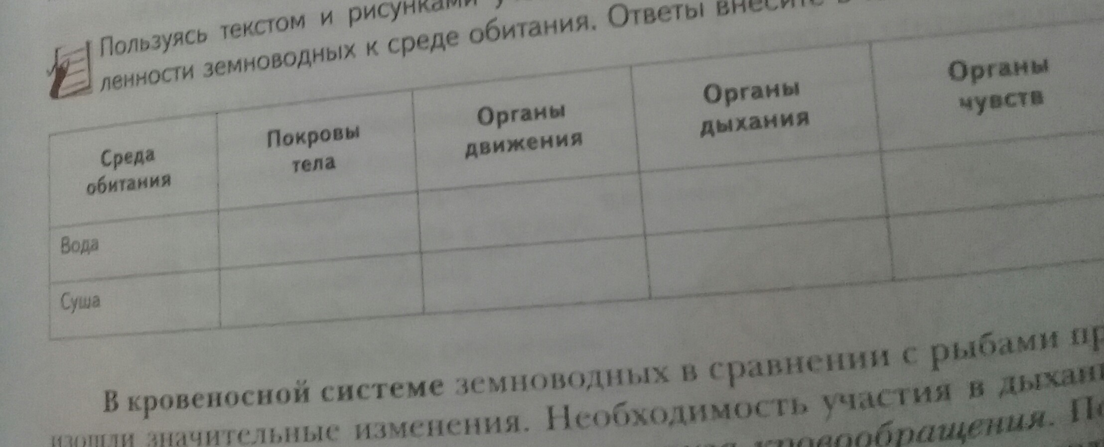 Пользуясь текстом и рисунками учебника Выделите признаки приспособленности земноводных к среде обитания ответы внесите в таблицу. спасибо