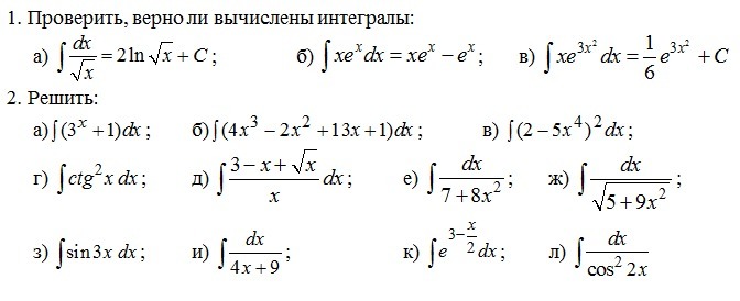 Решить задания на интегралы