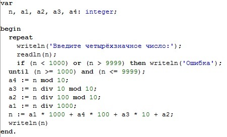 writeln('Введите четырёхзначное число:');