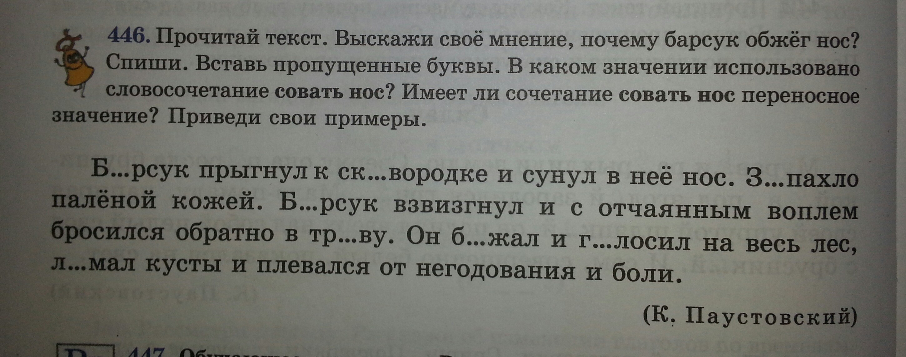 Барсук обжёг нос, потому что он хотел есть или просто любопытствовал.