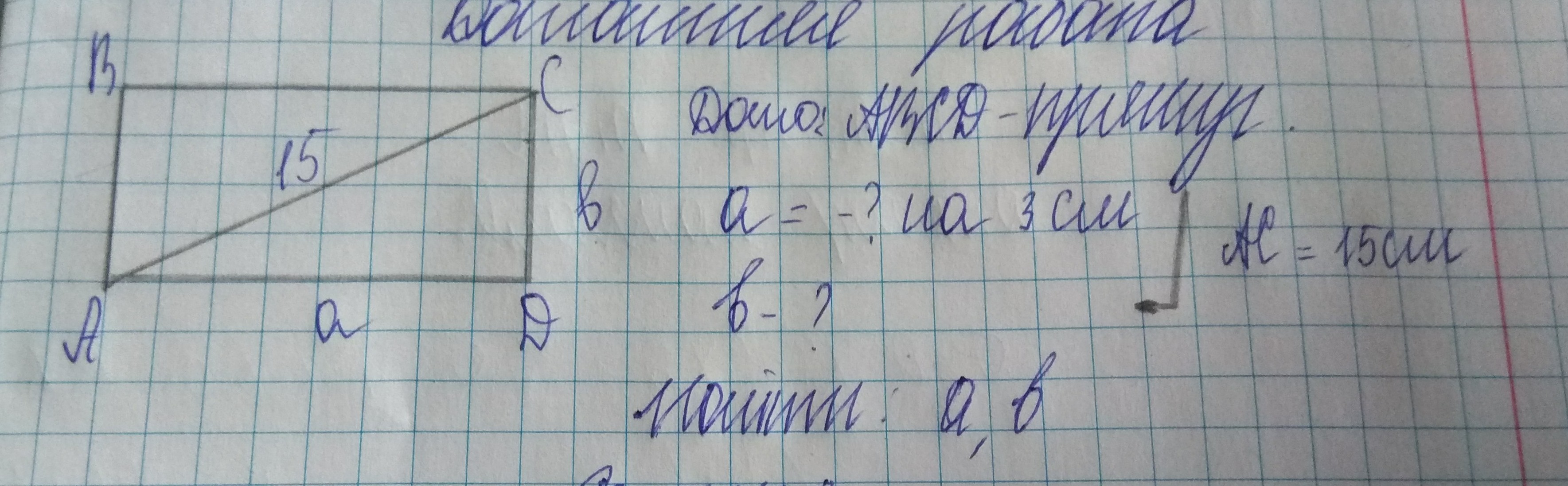 Гипотенуза 15 см