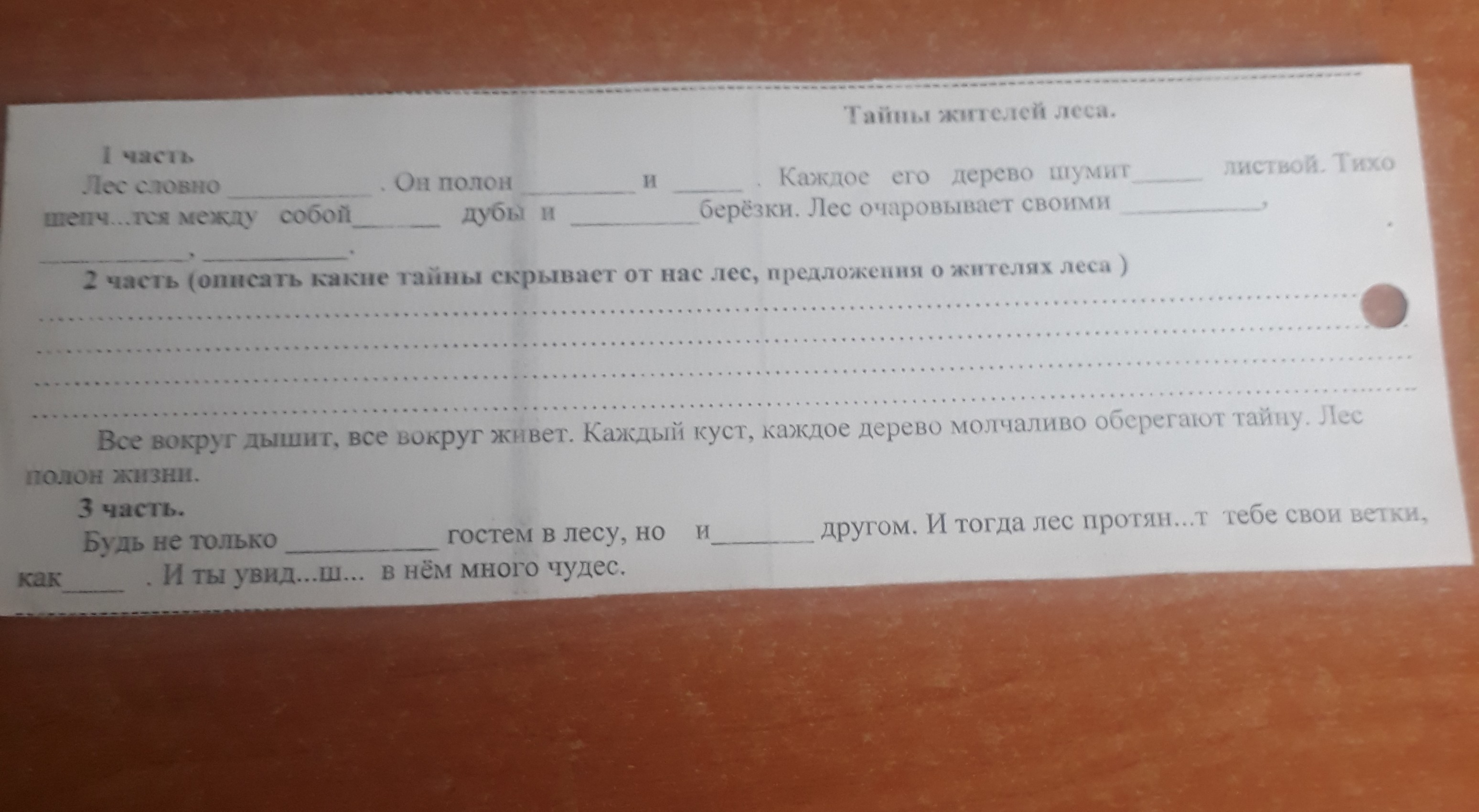 лес словно снег. он полон добра и счастья. каждое его дерево шумит неописуемо снежной листвой. тихо шепчется между собой высокие дубы и маленькие березки. лес очаровывает своими нежными, снежными, листьями.