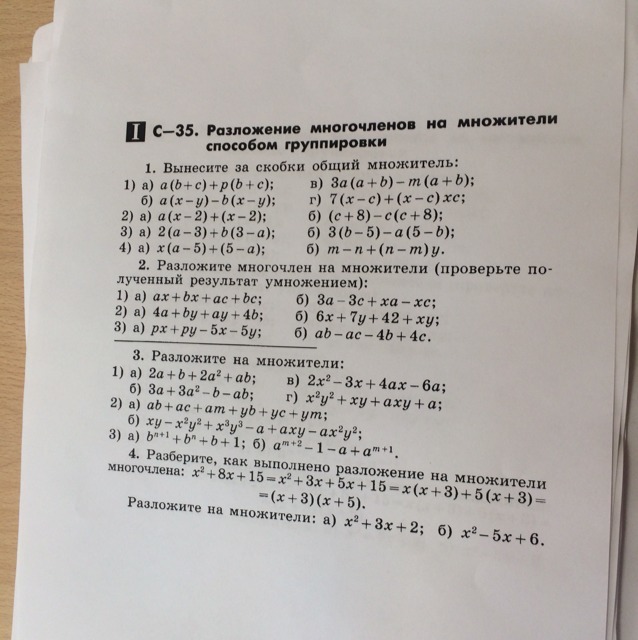б) 3(b-5)-a*(-(b-5))=3(b-5)+a*(b-5)=(3+a)*(b-5)